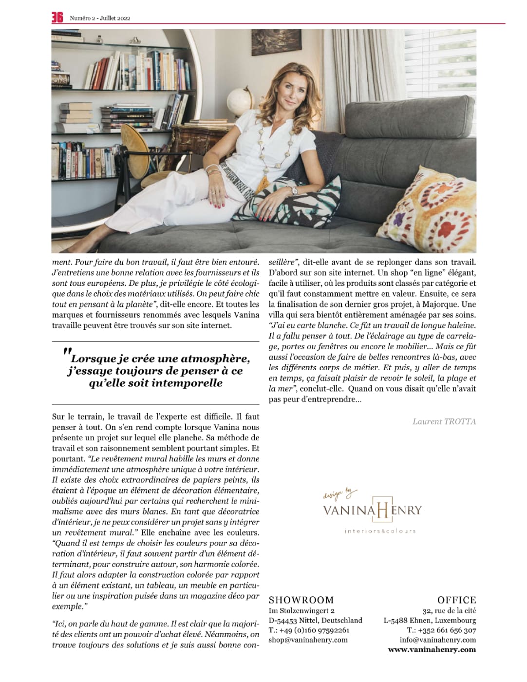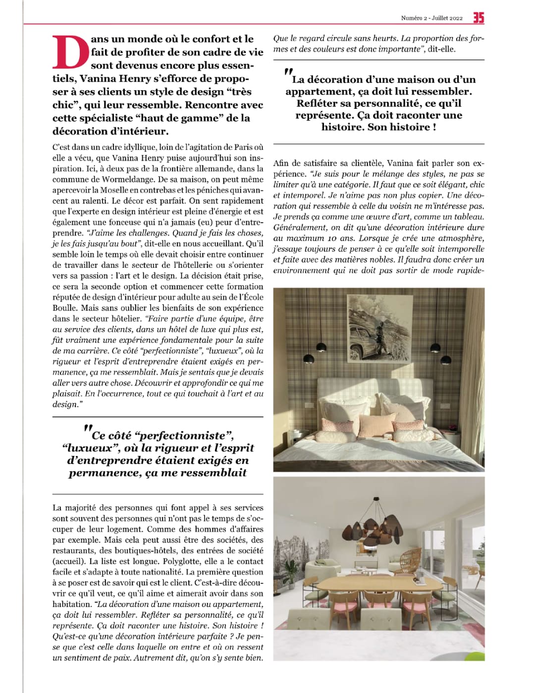 Interview zum Thema Innenarchitektur in der Zeitschrift für den öffentlichen und privaten Sektor des Großherzogtums,