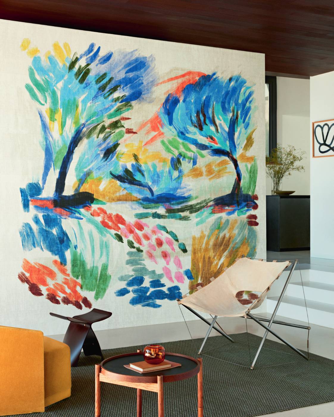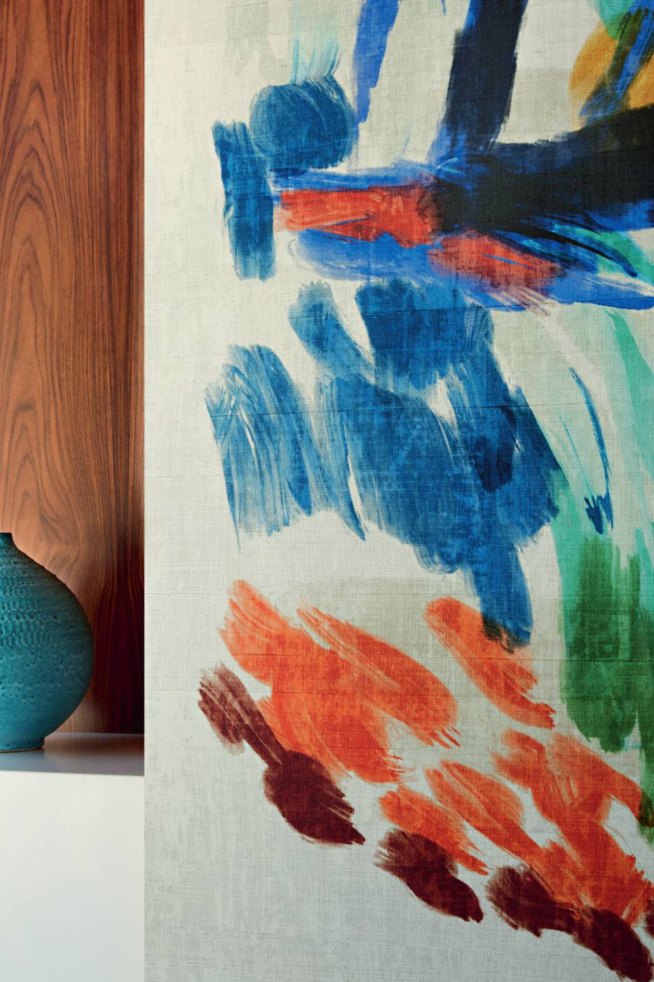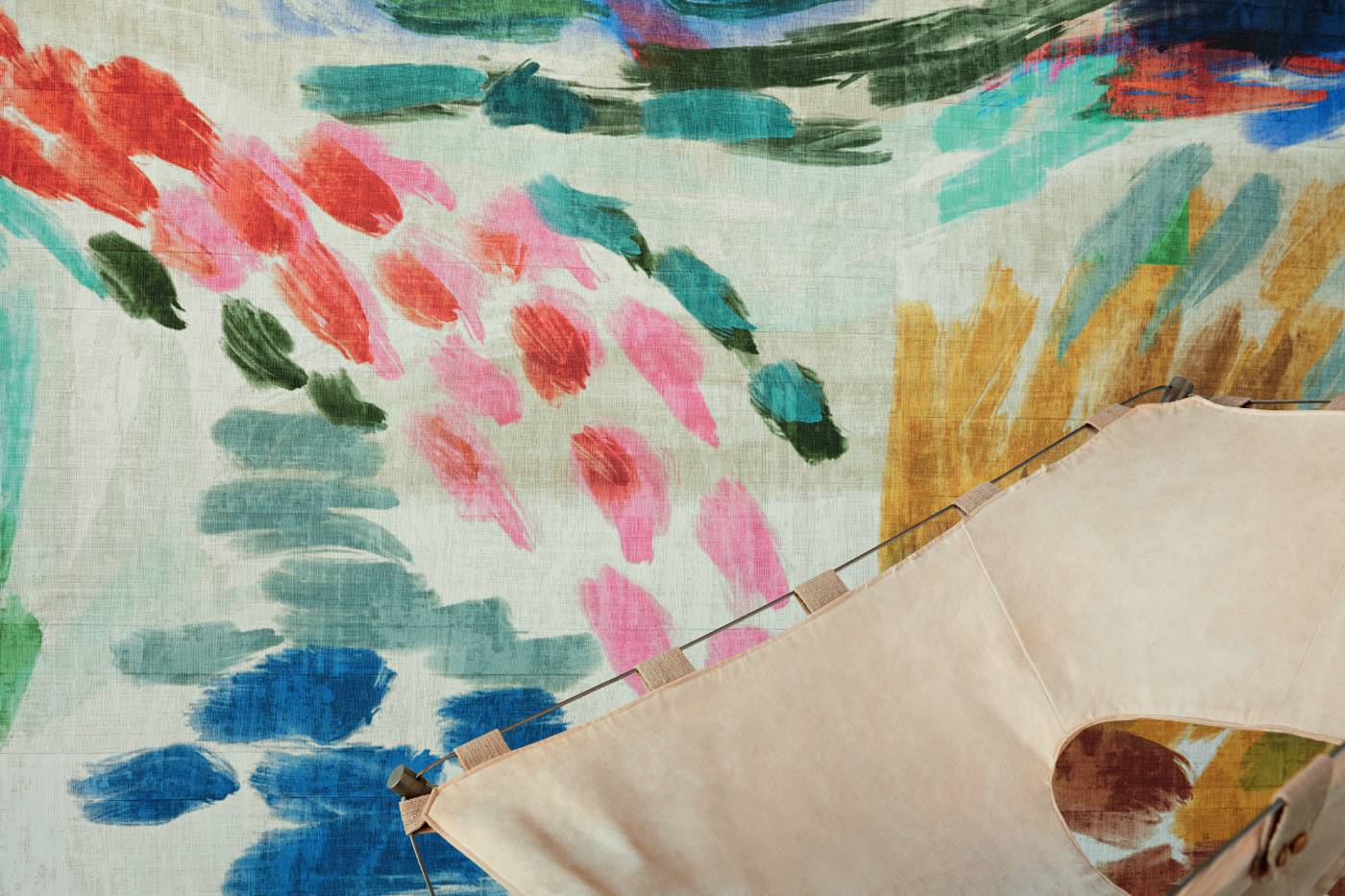 Geprägte Vinyltapete in Raffiagewebeoptik.