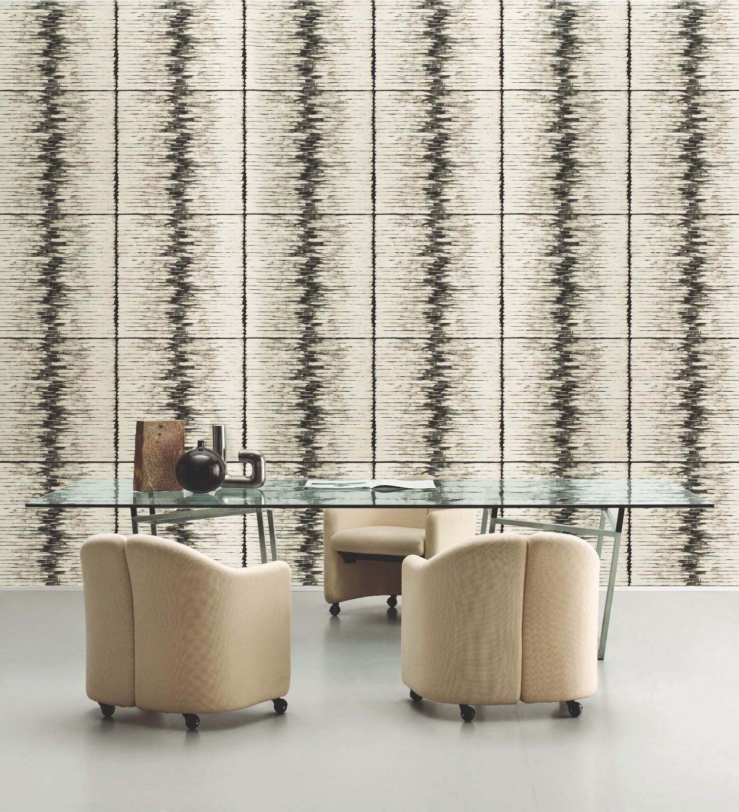 Beschreibung: Geometrische Muster auf Vliesstoff.
