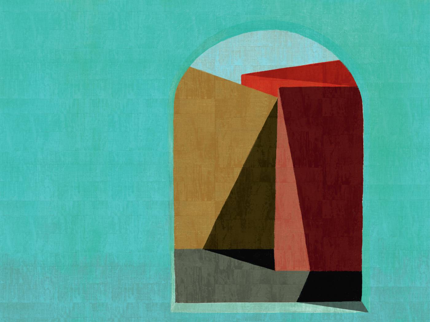 Geprägte Vinyltapete in der Optik eines Raffiagewebes.