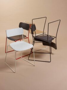 RECYCLED PLASTIC is also used today to make table tops, shelves, chair backs… and their colours are amazing.