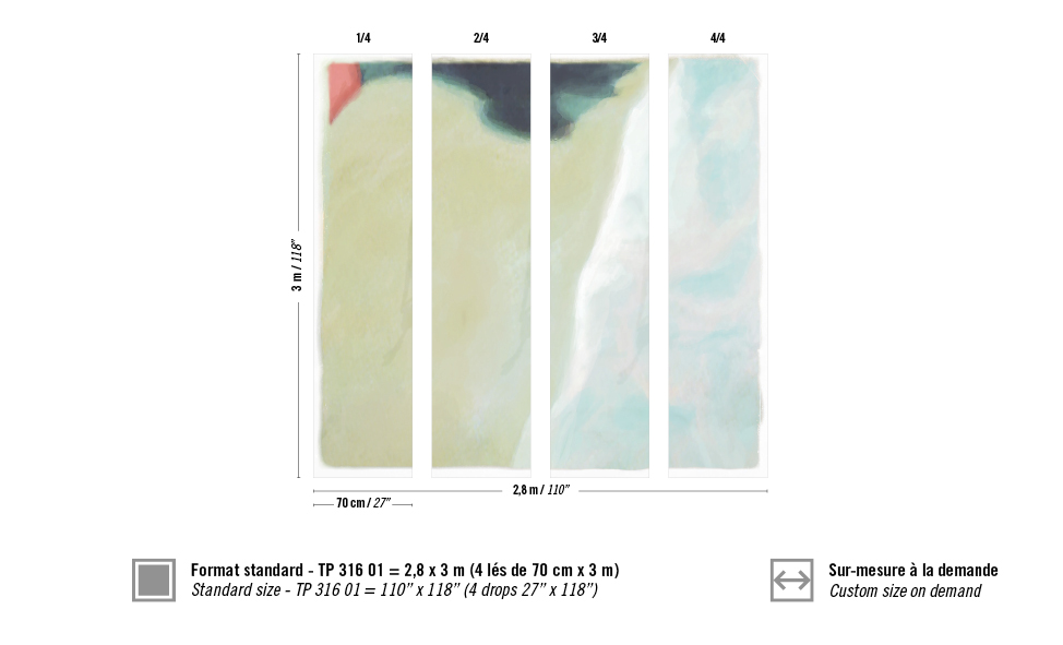 Dimensions: Standard 2.8m (width) x 3m (height) available in 4 strips of 0.7m or custom made. Contact us for more information.