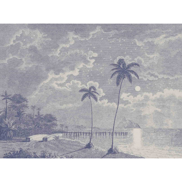 Palmar is a print that depicts a paradisiacal beach at night. Project yourself, sitting on the sand admiring the moon reflected in the calm and quiet sea. This exotic landscape with its large palm trees will perfectly suit a room for a peaceful atmosphere that invites you to relax and dream.
