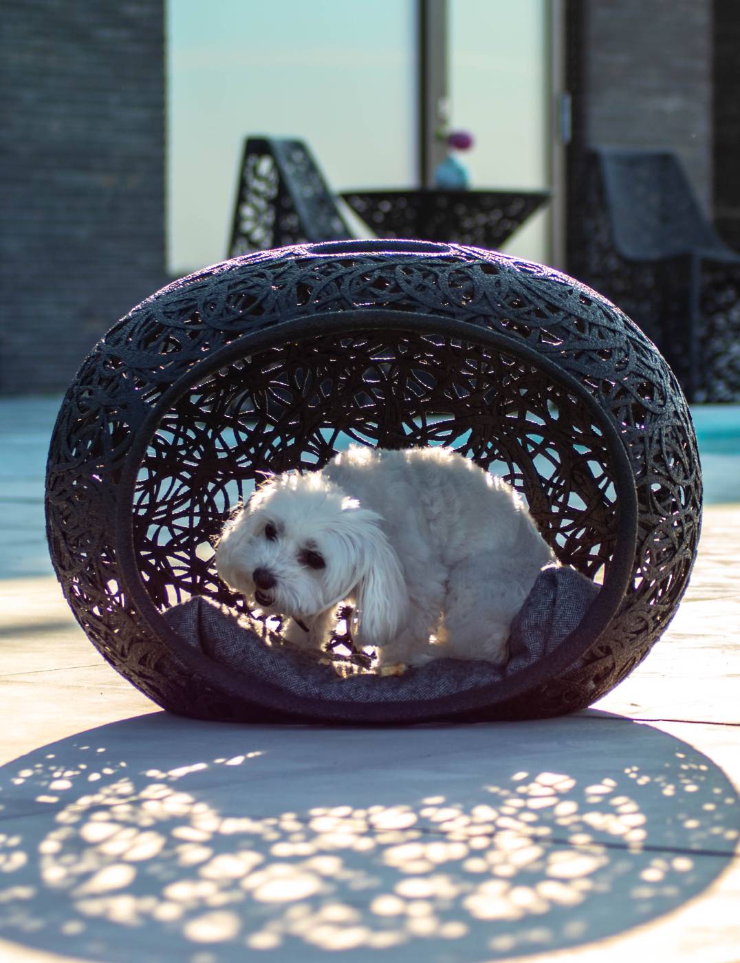 PropertiesThe furniture is UV, salt and chlorine resistant and therefore suitable for use in aggressive environments such as spas and swimming pools.The furniture encapsulates heat, which is why – despite its black colour – it does not become too hot in the sun.MaterialThe furniture is made of volcanic basalt and resin.The surface is treated with Bullet-Liner, a polyester rubber.MaintenanceThe basket set is maintenance-free. It can be cleaned with a long bristle brush and water or with a high pressure cleaner.MeasuresH:60 W:47 D:43 cmColourBlackGuarantee2 years