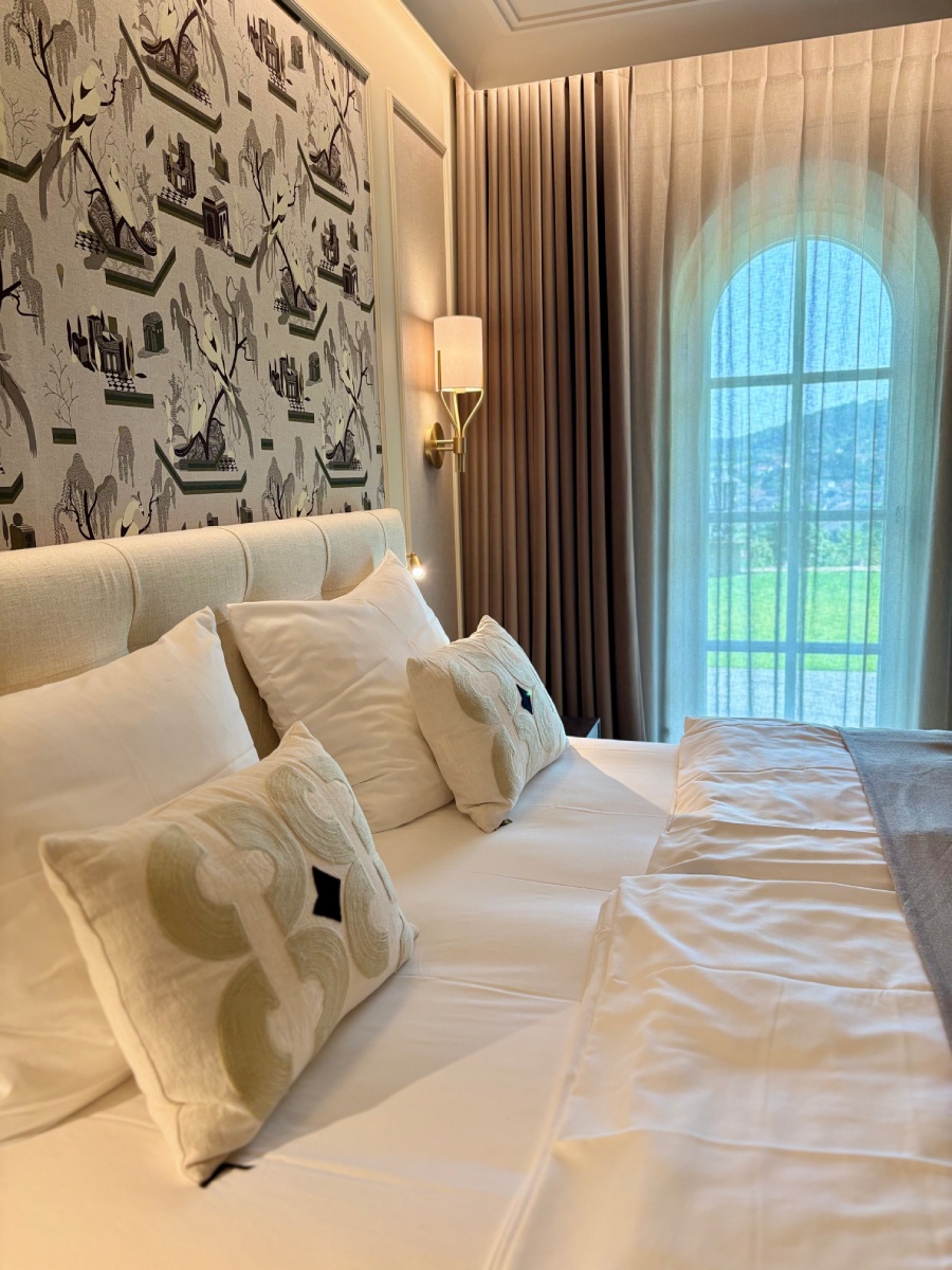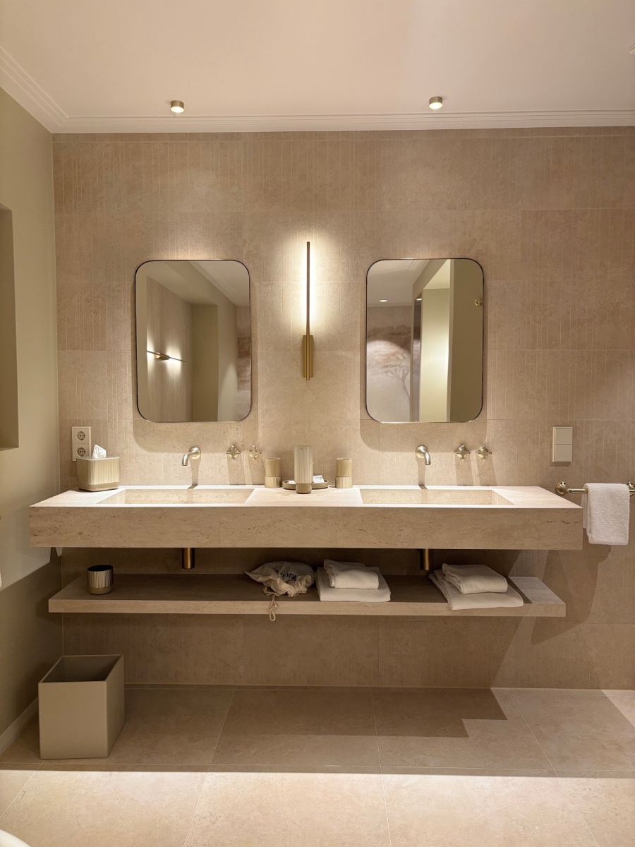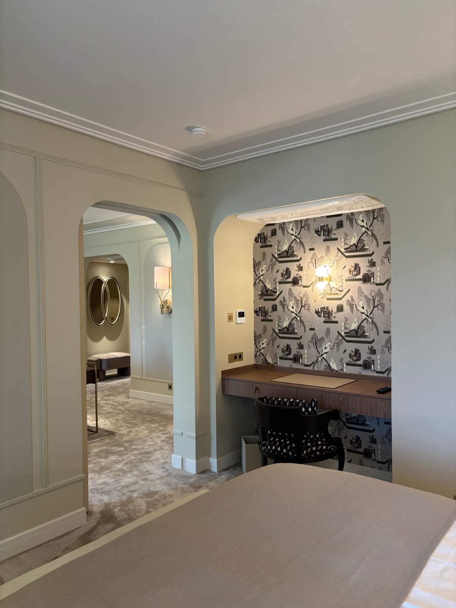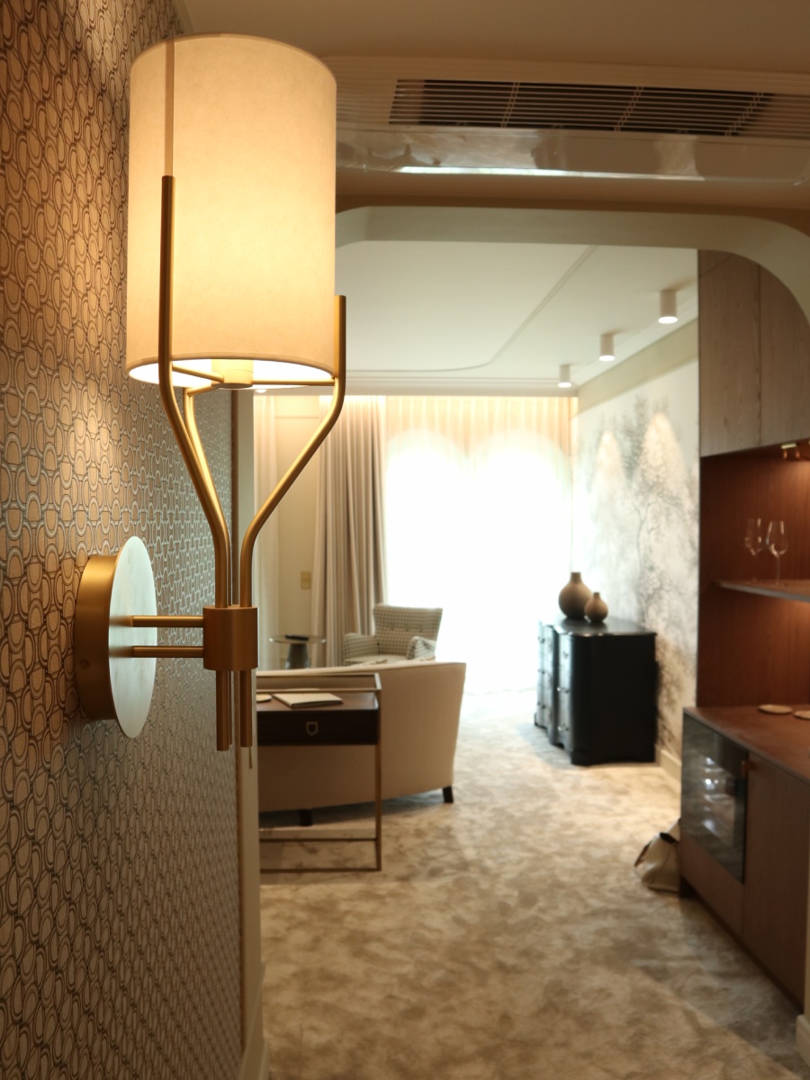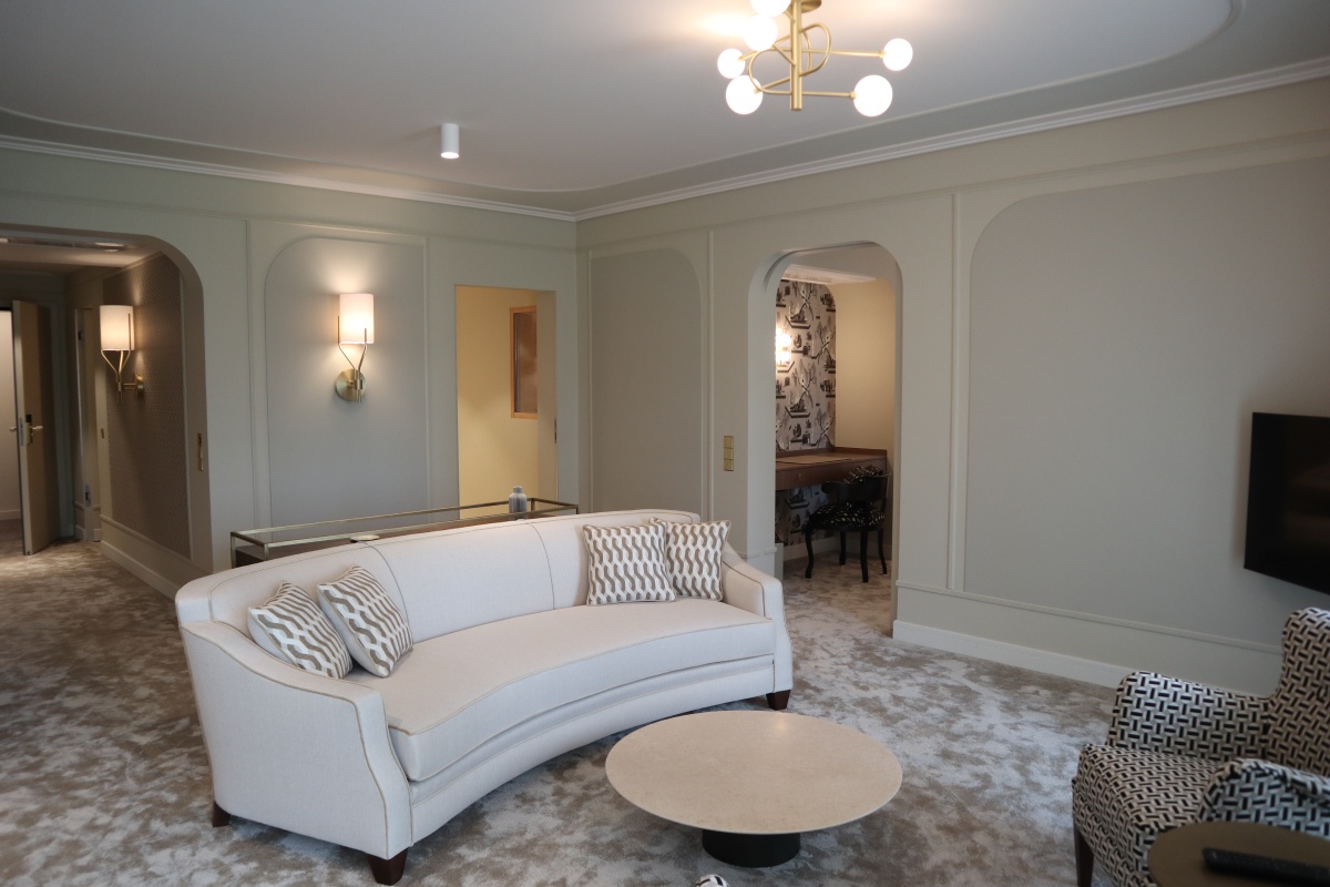 With a forest theme, Vanina Henry designed the 80 m² master suite and its travertine bathroom with luxurious fittings, including a sauna promising ultimate relaxation before a 3-star dinner. The design is luxurious and refined, with neutral tones and materials selected from leading French and Italian fabric and wallpaper manufacturers. With its rounded shapes, the architecture is soft, each line has been carefully considered with generous volumes. The mouldings adorn the walls in a contemporary style, the doors blend subtly into the décor. The furniture has been chosen from high-quality European manufacturers, allowing for exacting customisation.