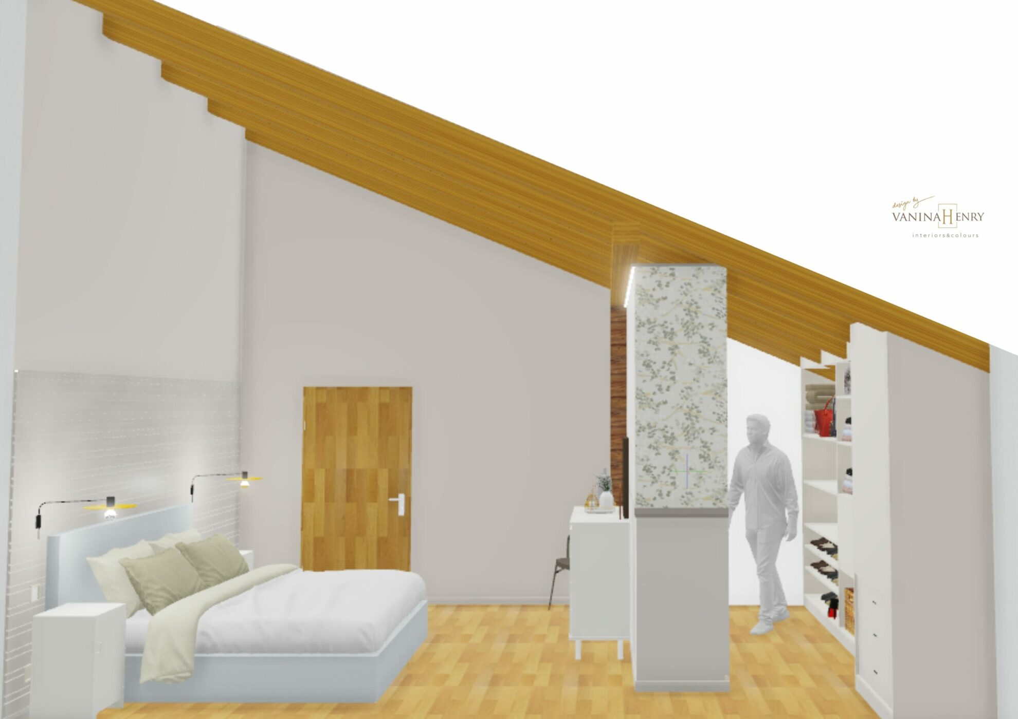 Dans ce projet, il s'agissait de refaire la chambre à coucher avec ses hauts plafonds afin d'y ajouter un dressing