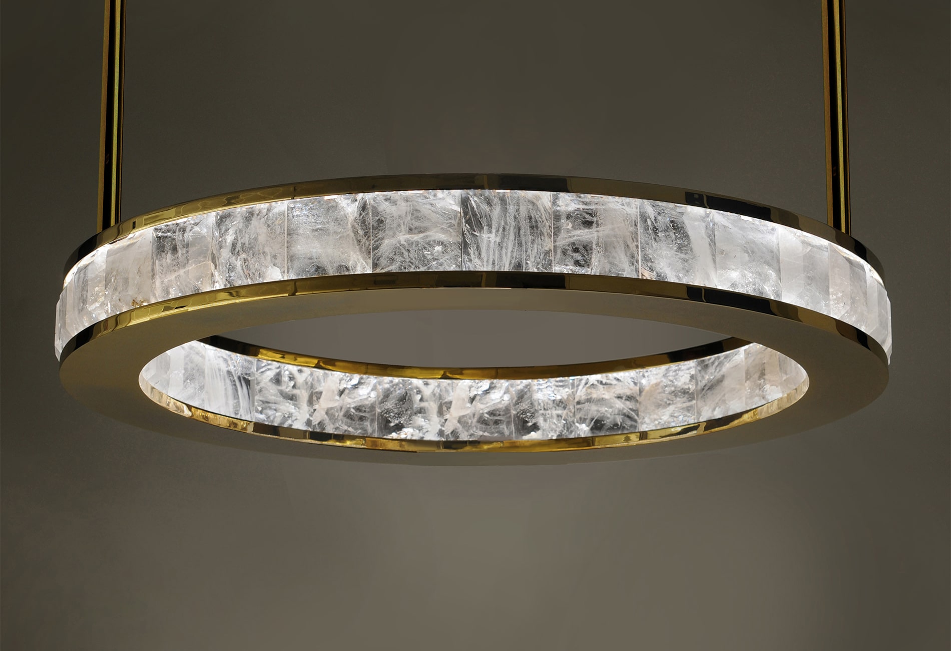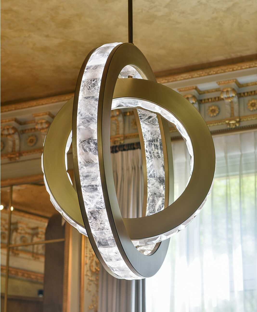 Un choix méticuleux entre transparence et fissures mystérieuses du minéral est fait pour une diffusion de la lumière exceptionnelle. Pour chaque lustre, les cristaux sont associés avec finesse. Après une analyse et des détails de fabrication finement étudiés, l’incorporation de nouvelles technologies LED autorise des effets de lumière novateurs sur les cristaux.