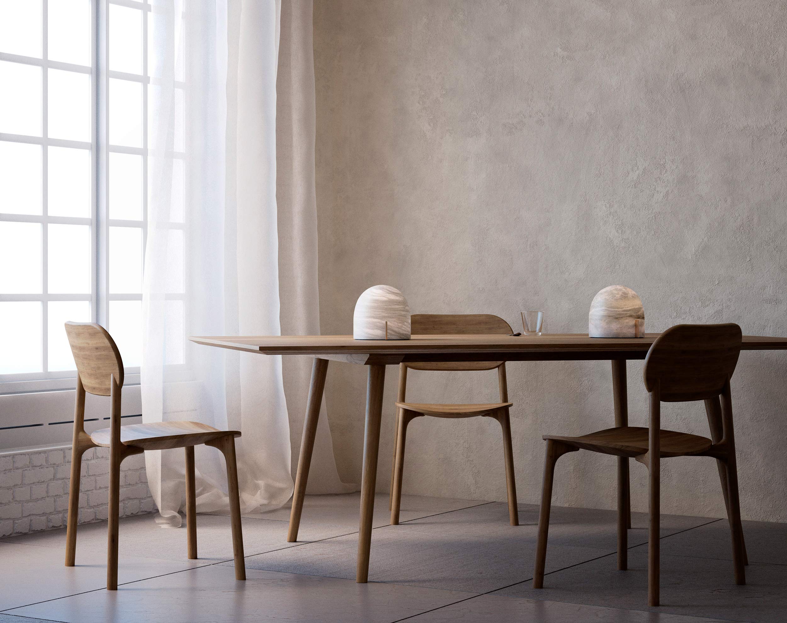 Tous les éclairages Atelier Alain Ellouz.édition sont fabriquées en pierre d’albâtre, qui possède une translucidité naturelle. Des blocs sont extraits de la carrière, sélectionnés puis sculptés et lissés, avant d’être munis d’un éclairage intérieur. Cette matière, qui crée des nuances de blanc chaud, diffuse une lumière douce, chaleureuse et enveloppante.