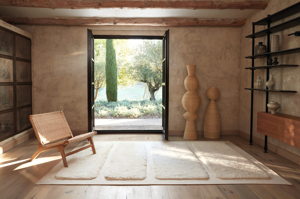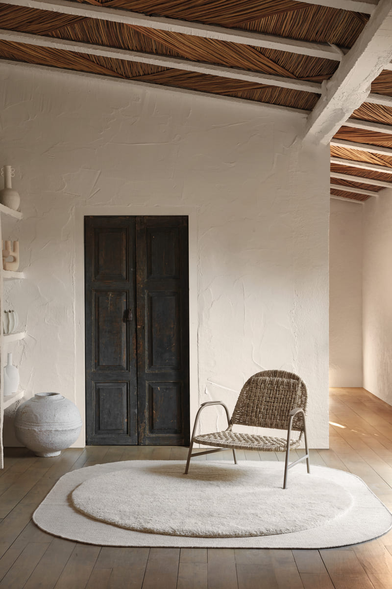 En laine de Nouvelle-Zélande ce tapis est une merveille de douceur. Mélange de deux techniques ancestrales, laine tuftée et tissage plat, Alaska, est une combinaison géométrique parfaite tout en rondeur et minimalisme.