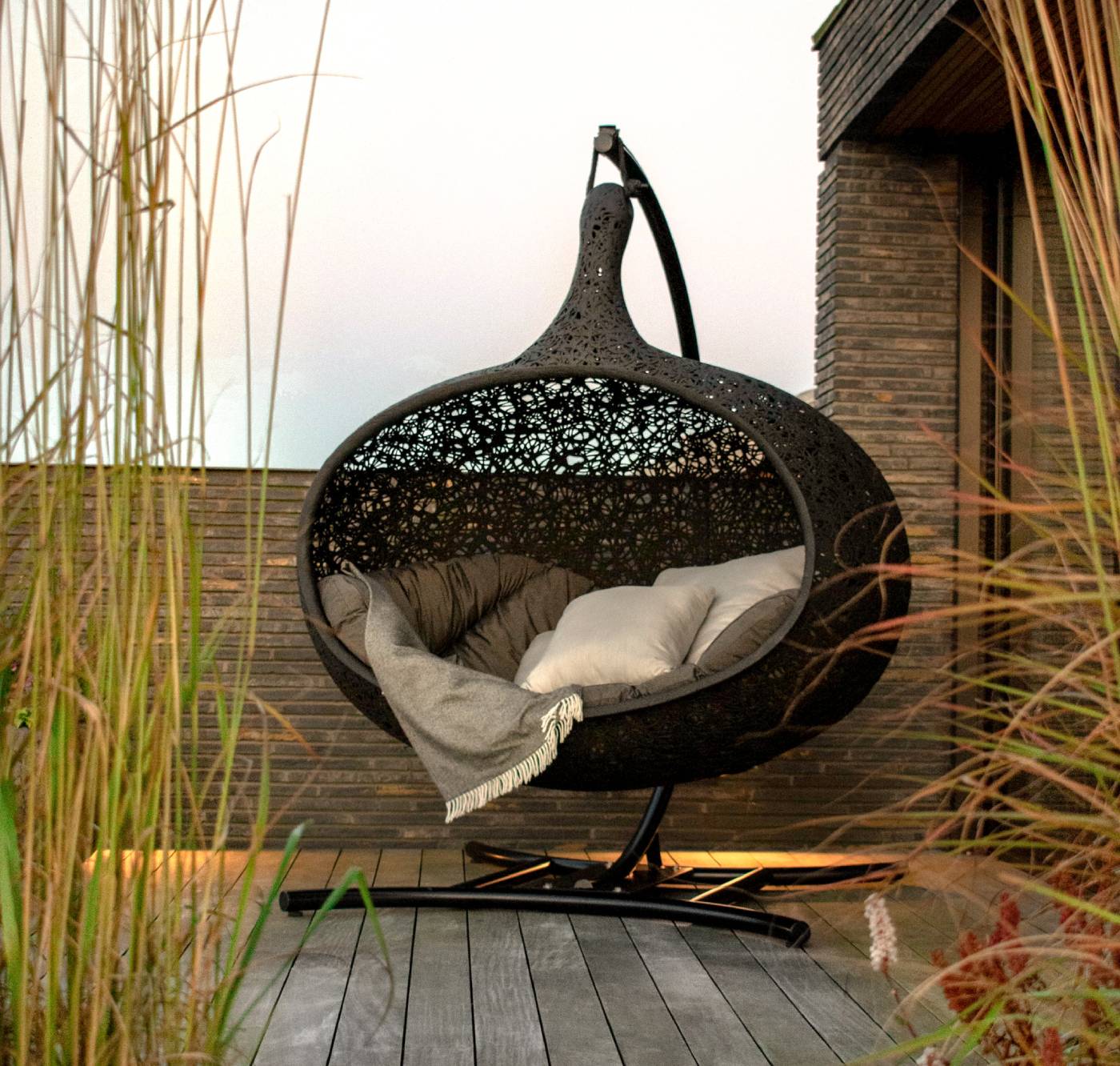 Le mobilier encapsule la chaleur, c’est pourquoi – malgré sa couleur noire – il ne devient pas trop chaud au soleil.