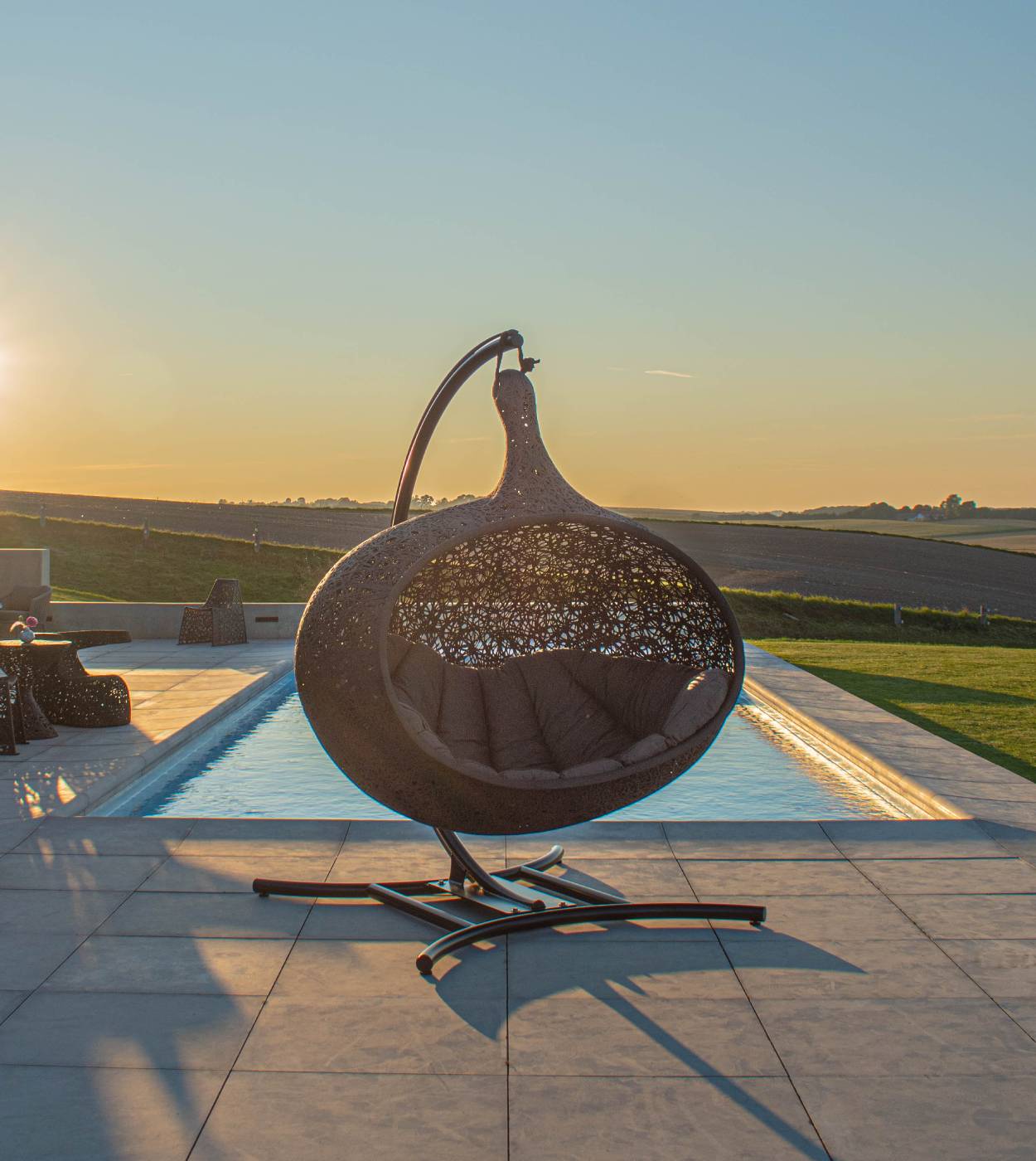Bios Hide pèse environ 30 kg. et la charge utile est de 250 kg. Le basalte est réputé être 3 fois plus solide que l’acier. Le mobilier est résistant aux UV, au sel et au chlore et convient donc pour supporter des environnements agressifs tels que les spas et les piscines.