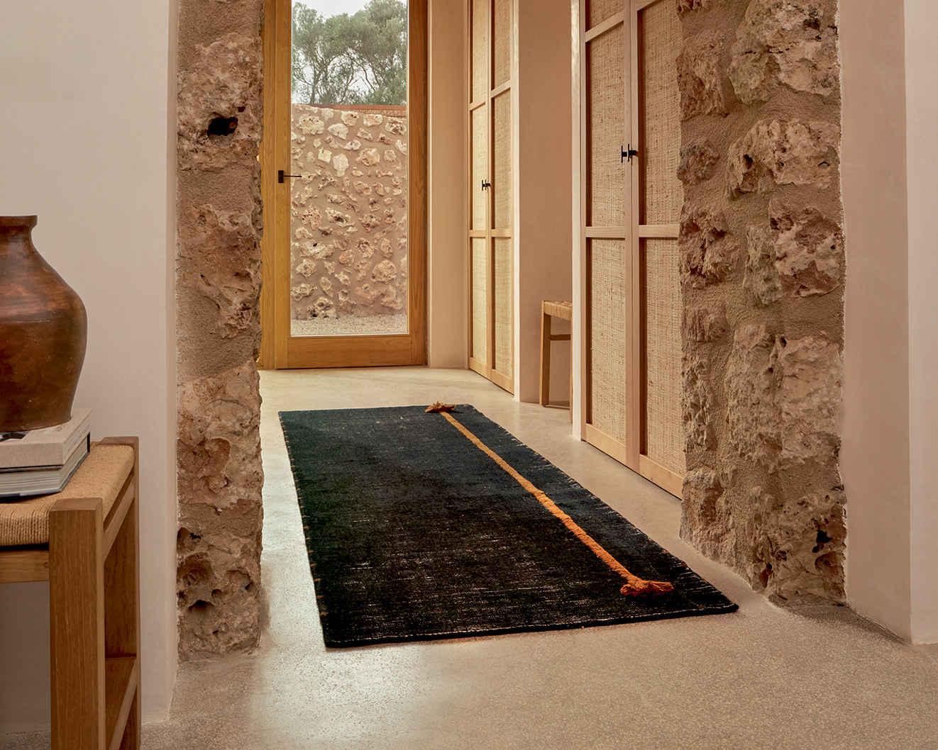 Avec ses pompons faits main et ses rayures irrégulières, chaque tapis Ernest est unique.
