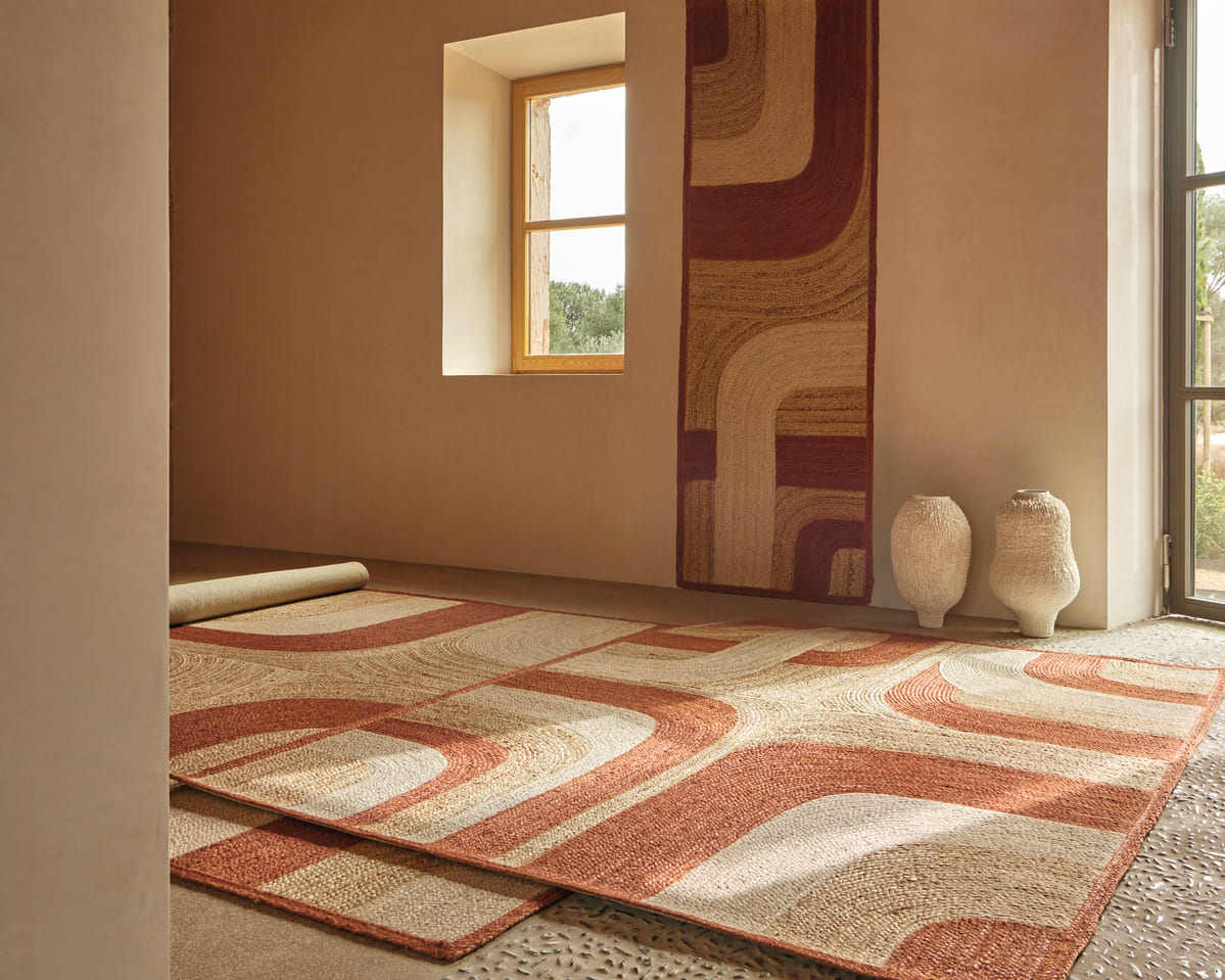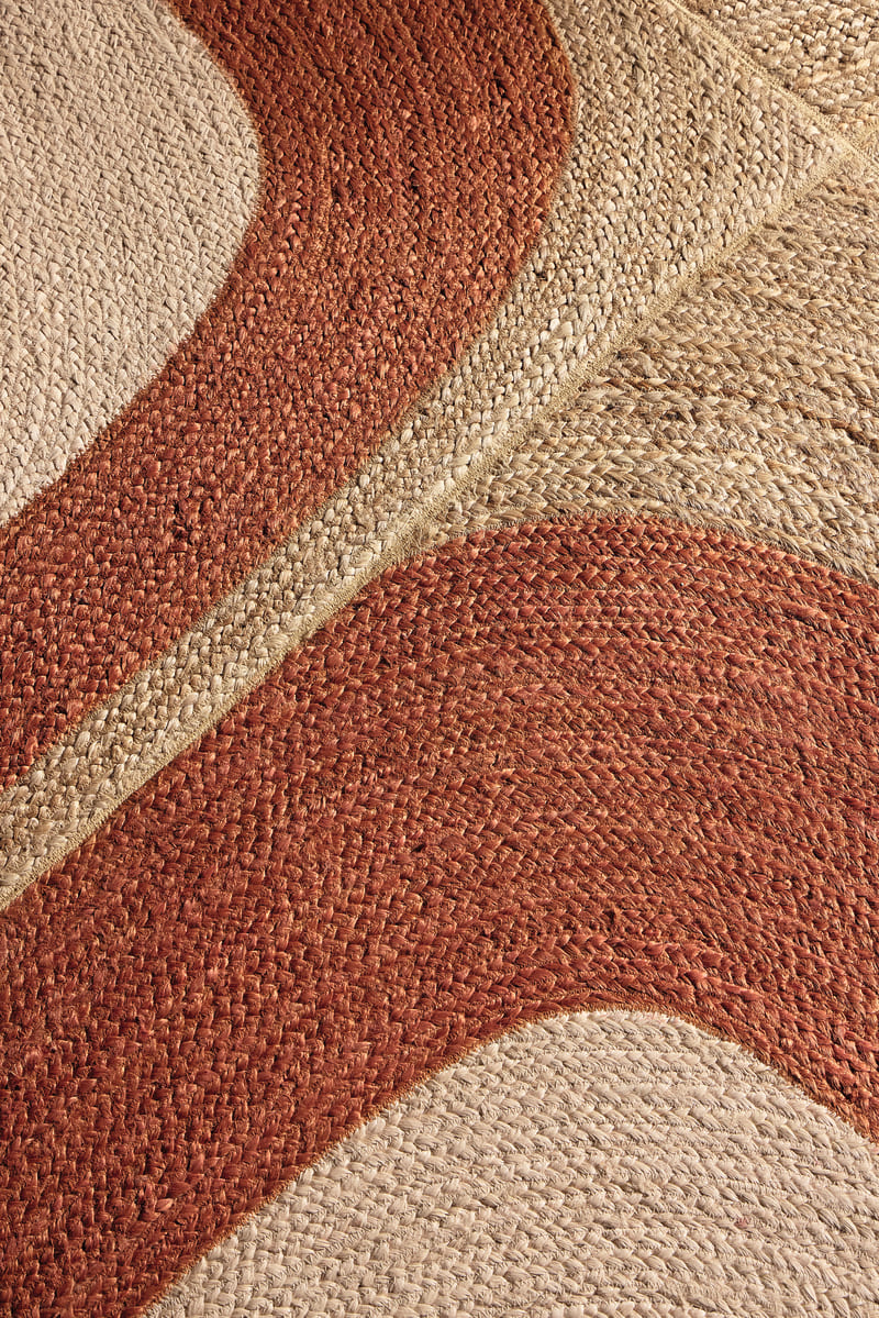 Avec le tapis Penny Lane, le jute offre son naturel au travers de courbes graphiques. Entièrement tressé à la main, il constitue une véritable pépite artisanale.