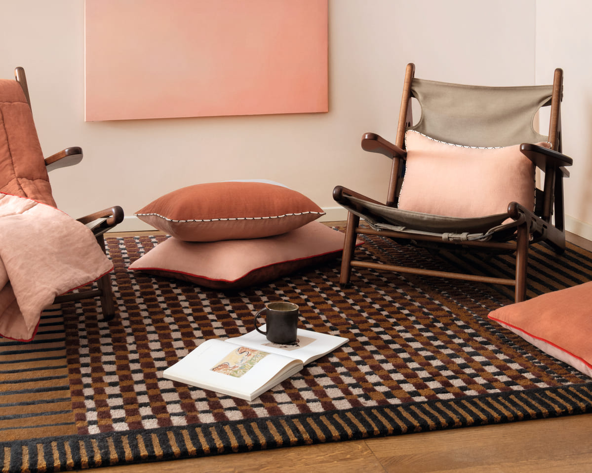 Sento est un juste équilibre entre rigueur graphique et douceur textile. Son motif minimaliste compose un dessin géométrique, décliné en deux teintes.