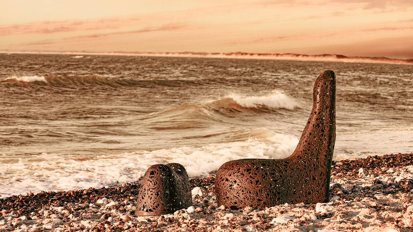 Le mobilier est réalisé en basalte volcanique et en résine.