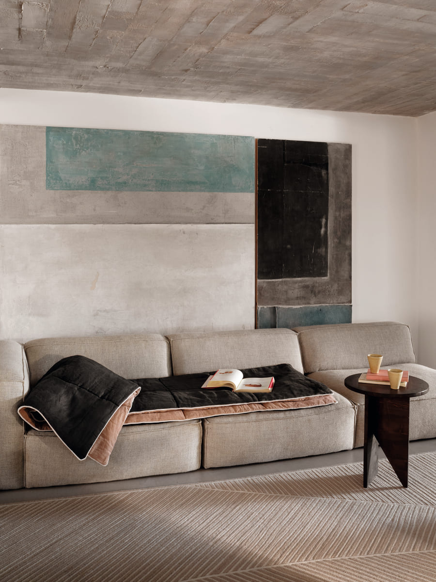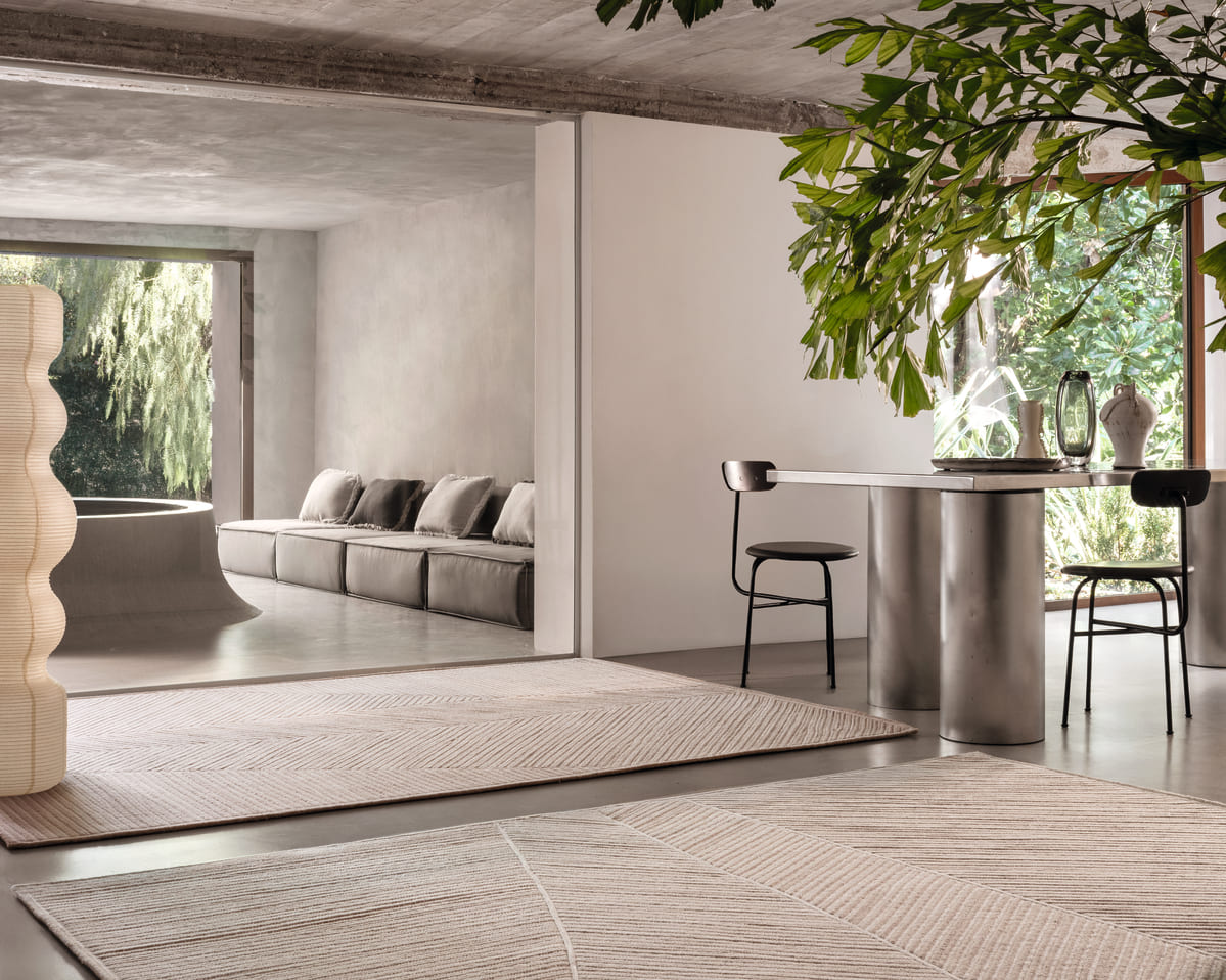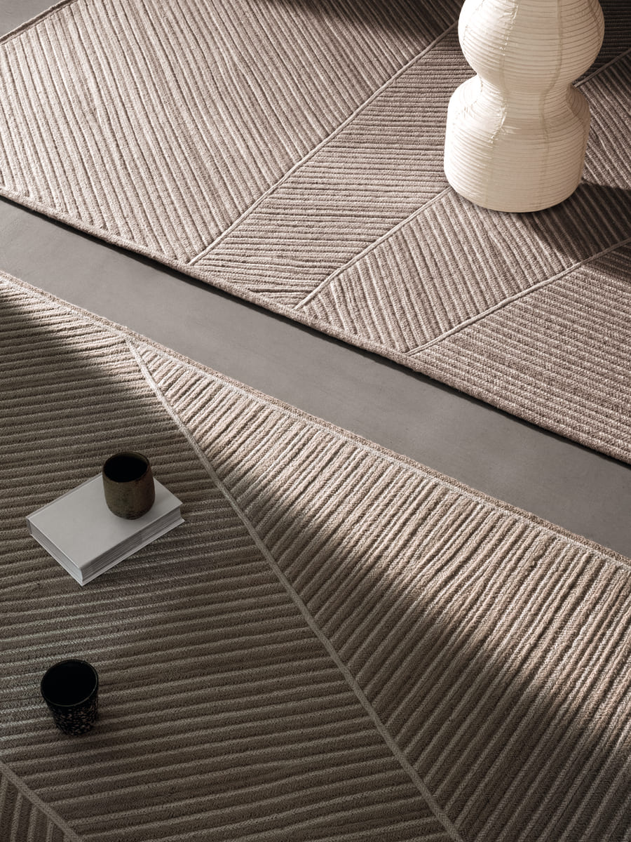 Zen est un tapis graphique et structuré par l’alternance de tresses en laine qui se croisent et se juxtaposent, évoquant une architecture silencieuse, ancrée et maîtrisée.