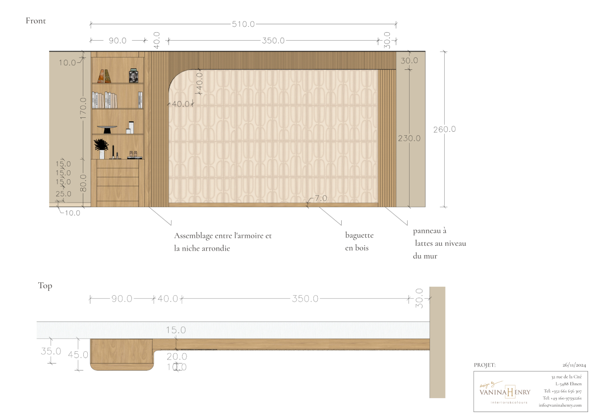 Vanina Henry a dessiné la cuisine, les armoires encastrées ainsi que la niche du salon.