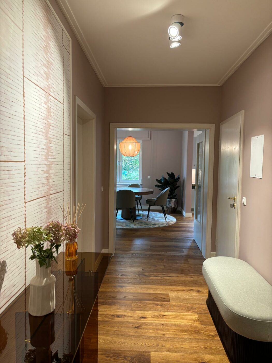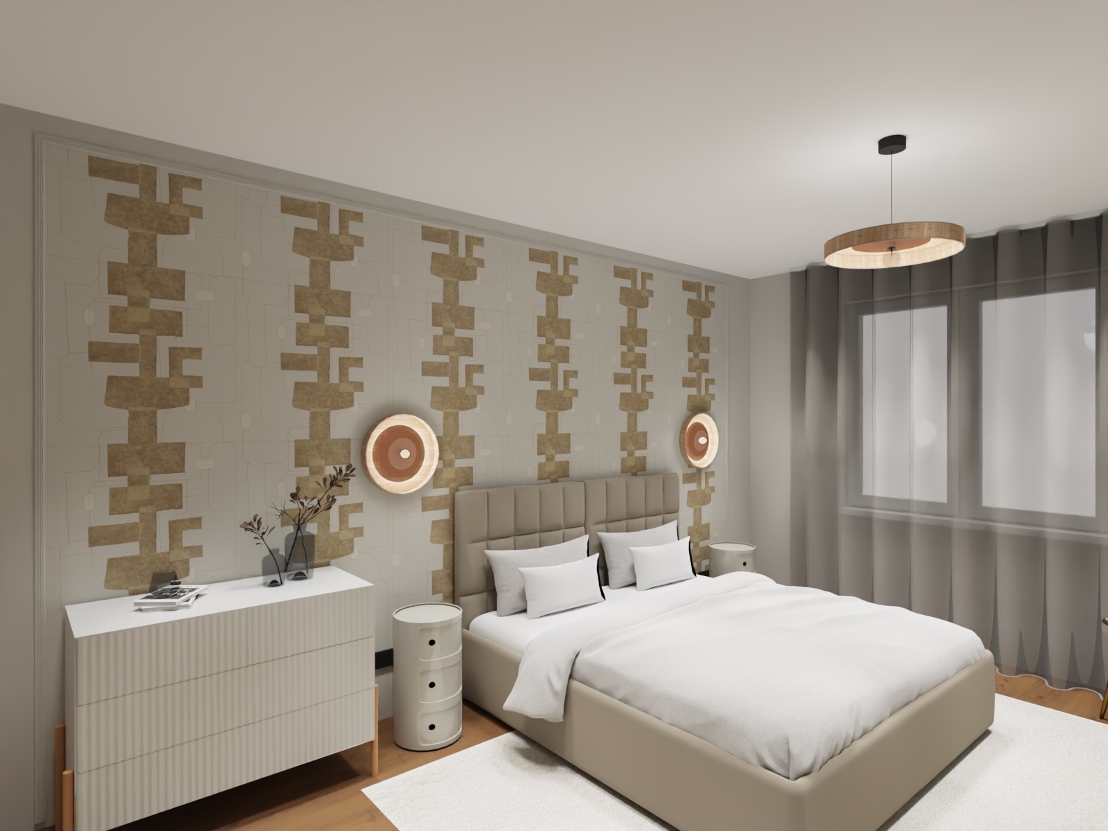 Une harmonie de couleurs douces mais distinctives est associée à des papiers peints. L'ambiance est chaleureuse et faite pour durer.