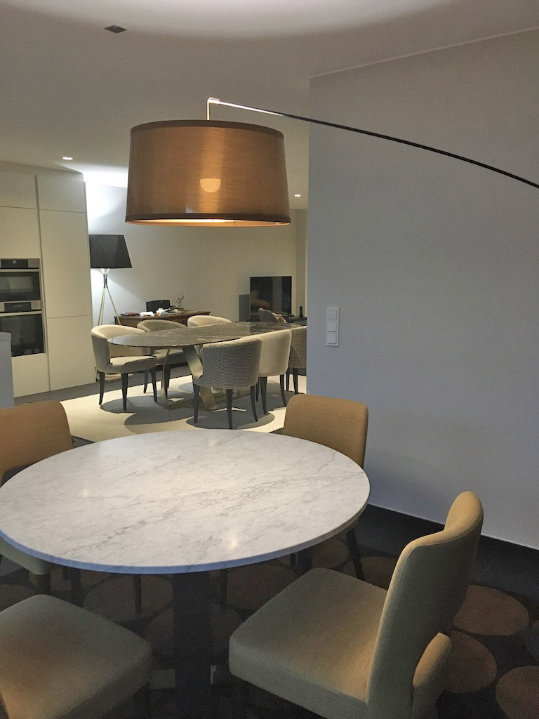 Deux espaces repas ont été créés, tous deux avec des choix de mobiliers de qualité.
